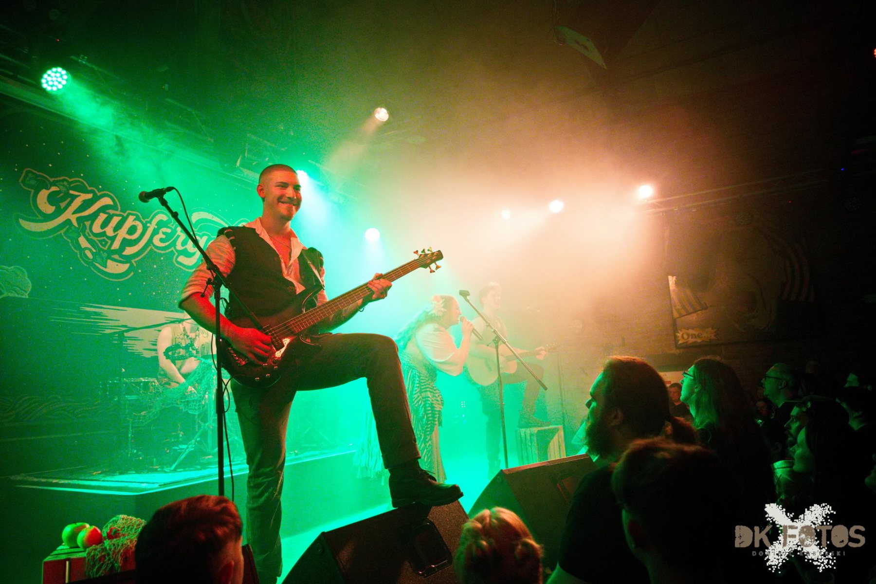 Nachdem Spielmann Absolem als Vorband schon für ordentlich Stimmung beim Publikum gesorgt haben, heizten die vier Musiker von Kupfergold erst richtig ein. Das Publikum war schnell zum Mitmachen und Mitsingen zu begeistern und es war ein fantastisches Konzert von Anfang bis Ende. Als spntaner Gastmusiker beim Konzert stand plötzlich Rodrigo Mansilla, der Sänger der Band Mythemia auf der Bühne. Nicht vergessen darf man auch Runa die Ruhige, von und zu Pöbeltier, die sich um den Merchandise-Verkauf der Band kümmerte und auch dafür sorgte, dass die Künstler auf der Bühne keine trockenen Kehlen bekamen.